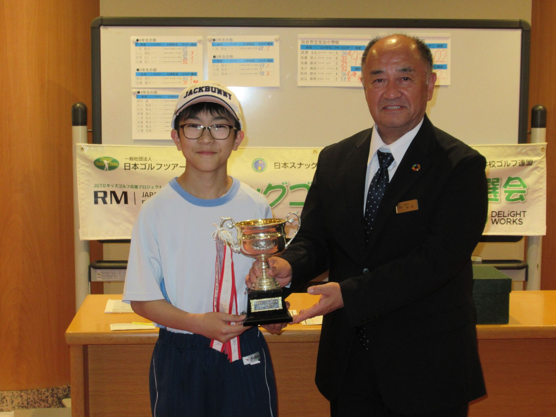 競技は、仙台空港カントリークラブ10番ホールのフェアウェイに特設されたコースで競われ、仙台市立生出小5年の佐藤優羽くんが、後続に3打の差をつけ初の総合優勝となり、団体の部でも生出小が6人のチームメンバーの層の厚さで優勝し、宮城県代表として全国大会への出場権を獲得した。