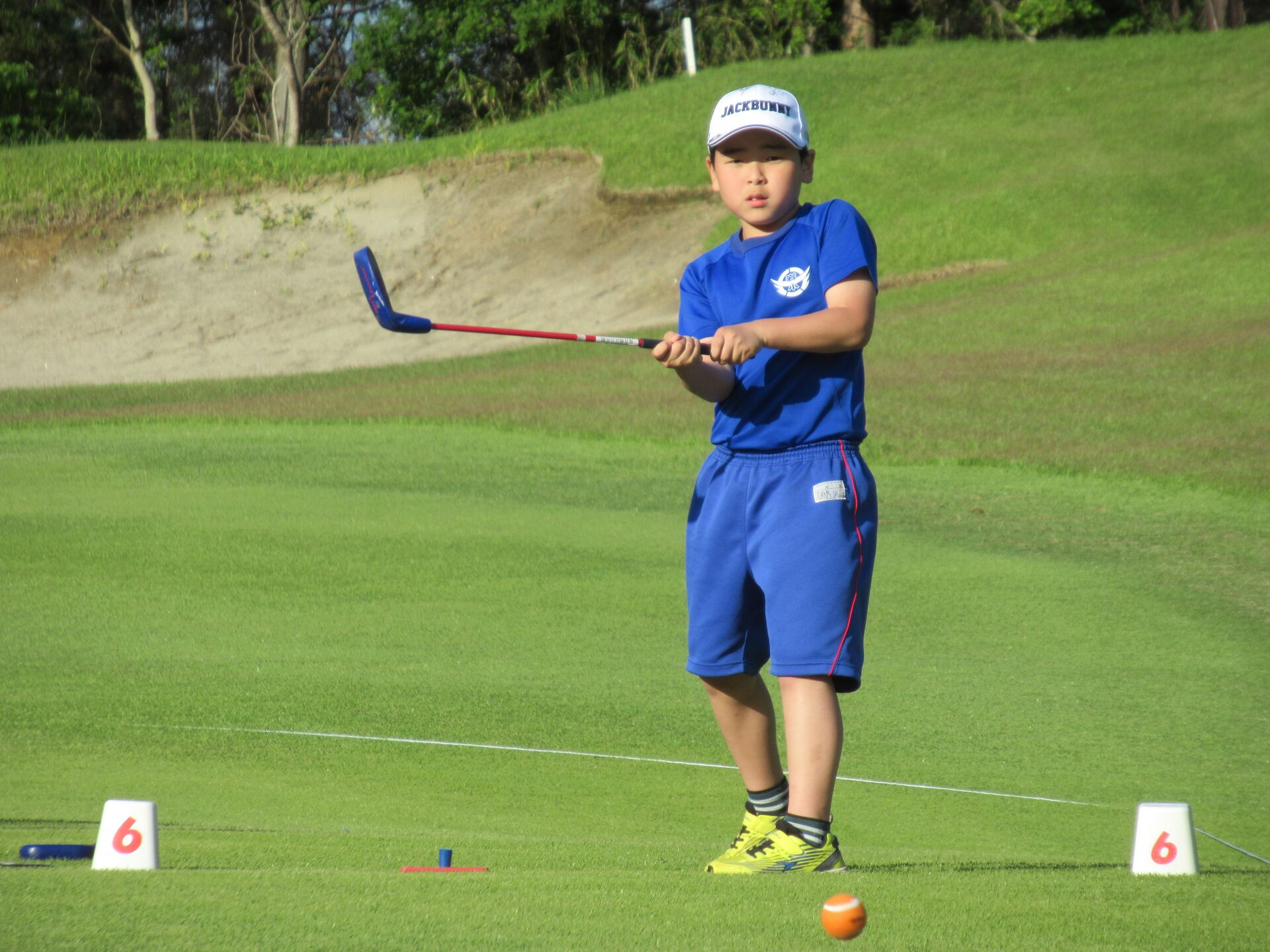 優勝校の生出小は、仙台空港カントリークラブのメンバーで競技委員でもある真壁一也さんがそのきっかけを作り、現在では保護者会が中心となった活動が継続中で、学校の校庭での練習で腕を磨いてきた。校庭の隅には雑草が生えていて、校内の管理スタッフの熱のこもった芝刈りによりコンディションをキープしてもらい、実践練習しているという。そんな練習の成果が実り全国大会への切符を手にすることができた。