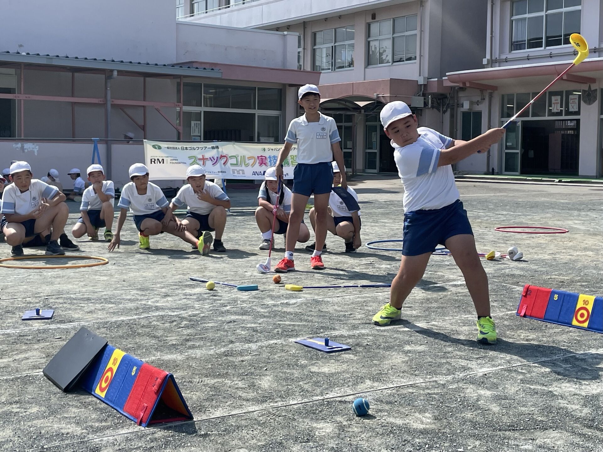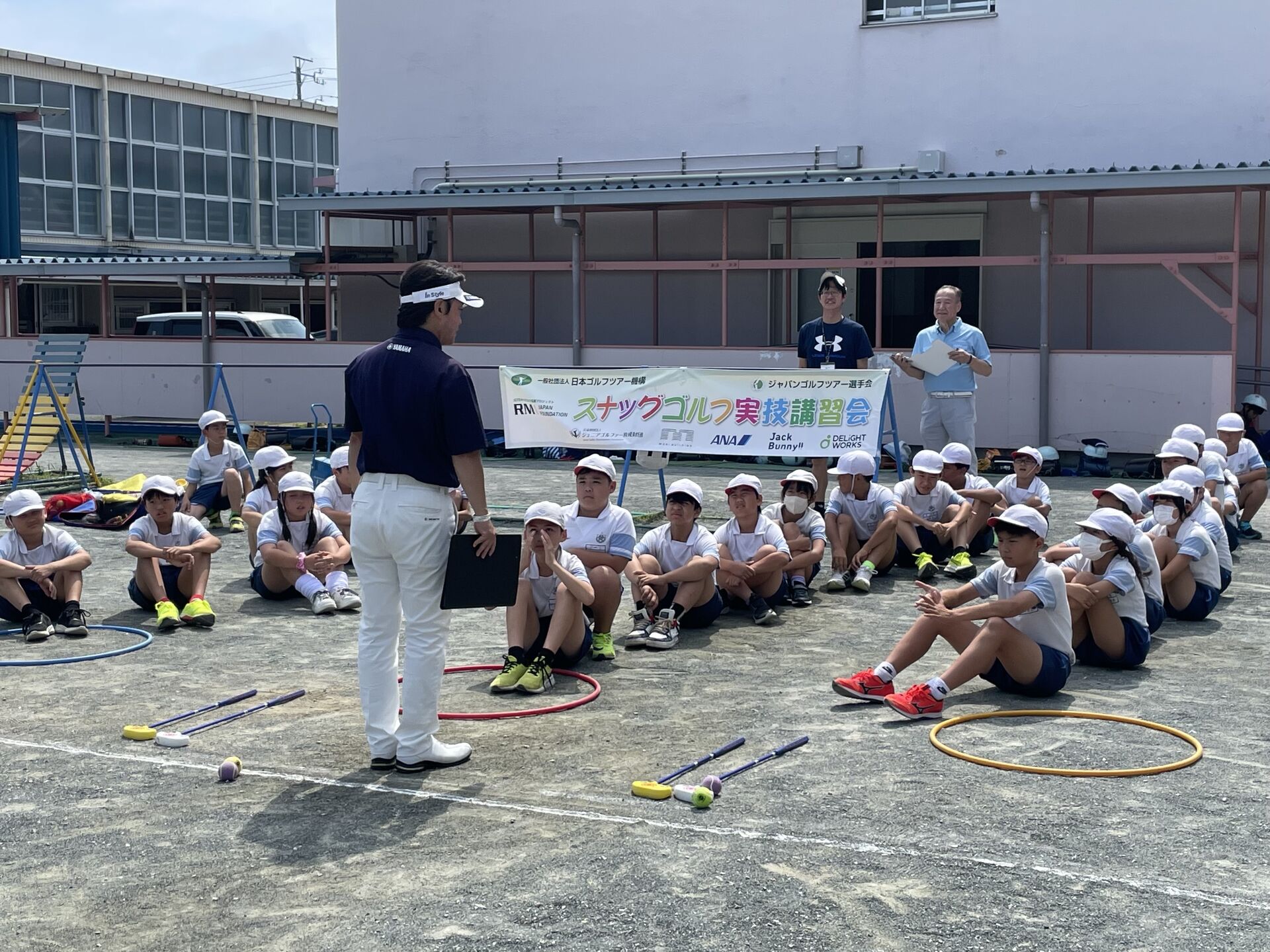 この活動は、ヤマハと浜松市と日本ゴルフツアー機構(JGTO)によるゴルフ普及策として2023年より始動した取り組みで、市内97校のうち19校がスナッグゴルフ・スクールセットの寄贈導入を受け、導入校では順次実技講習会が行われている。