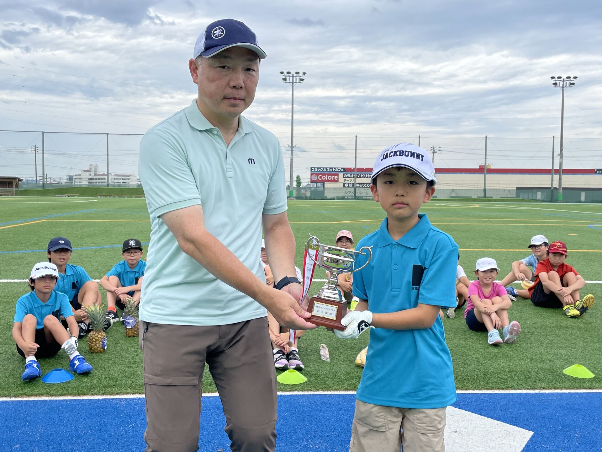 そんな源左久くんの活躍に注目が集まった第2回大会は、極暑ながらも雲が多めで風も吹き抜けるコンディションで9ホールがプレーされ、3学年差の弟・鈴州くんと31ストローク5アンダーで並んでのプレーオフにもつれ込み、強気のバーディパットを決めた鈴州くんが兄・源左久くんをかわして3年生ながら総合優勝に輝いた。