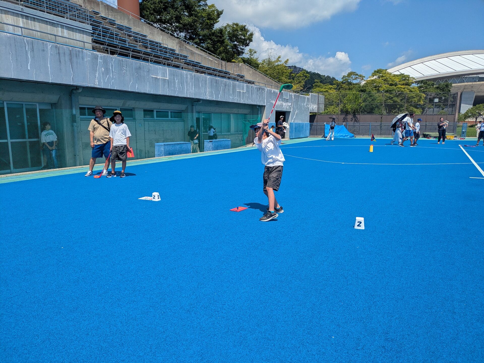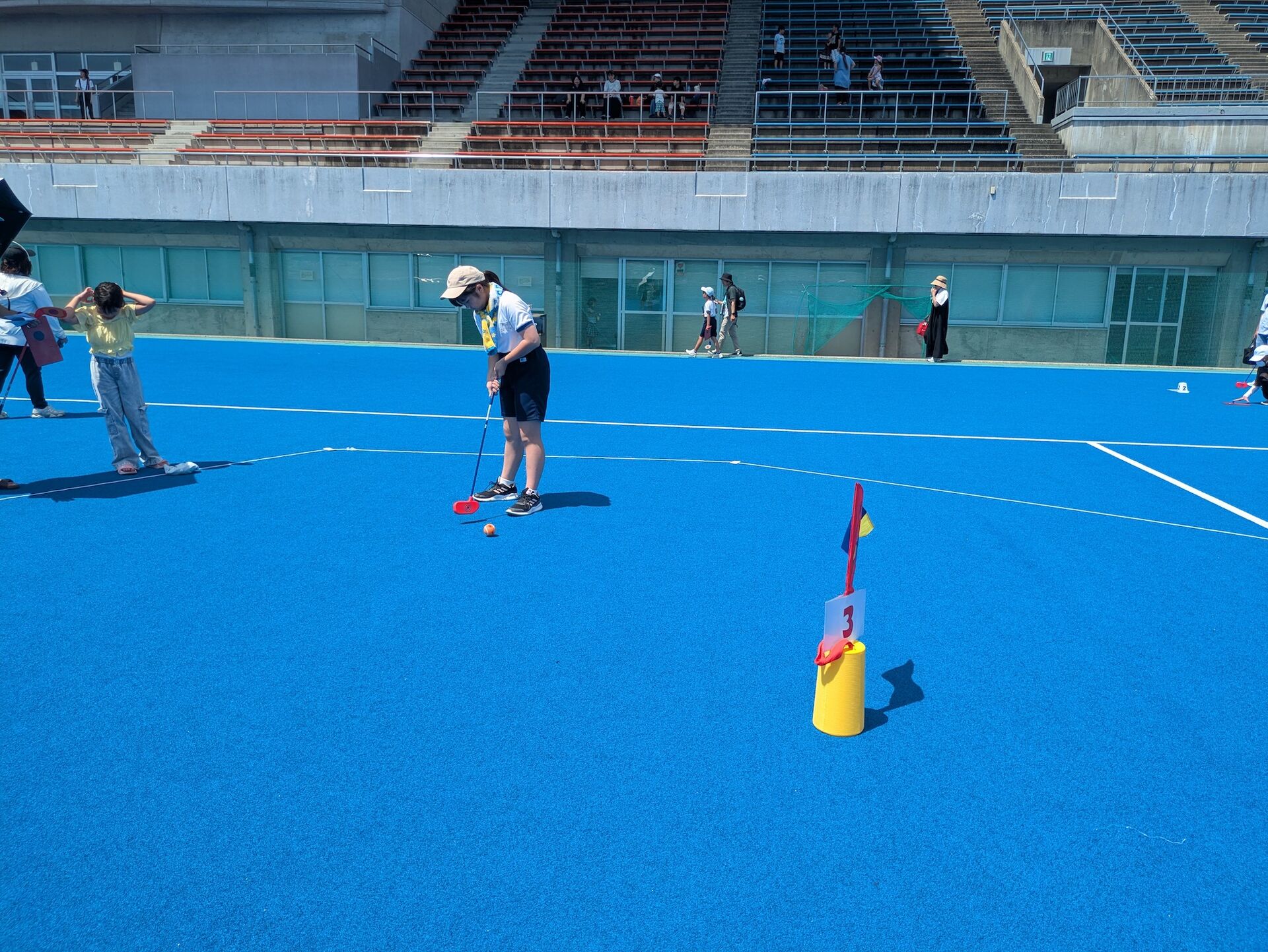 競技の舞台となった、広島広域公園第二球技場は、フィールドホッケーを開催できる人工芝のグラウンドで、ゴルフ場のフェアウェイと毛足が似ており、天然芝とそん色ない弾み具合と転がりで、スナッグゴルフ大会を実施することが出来た。