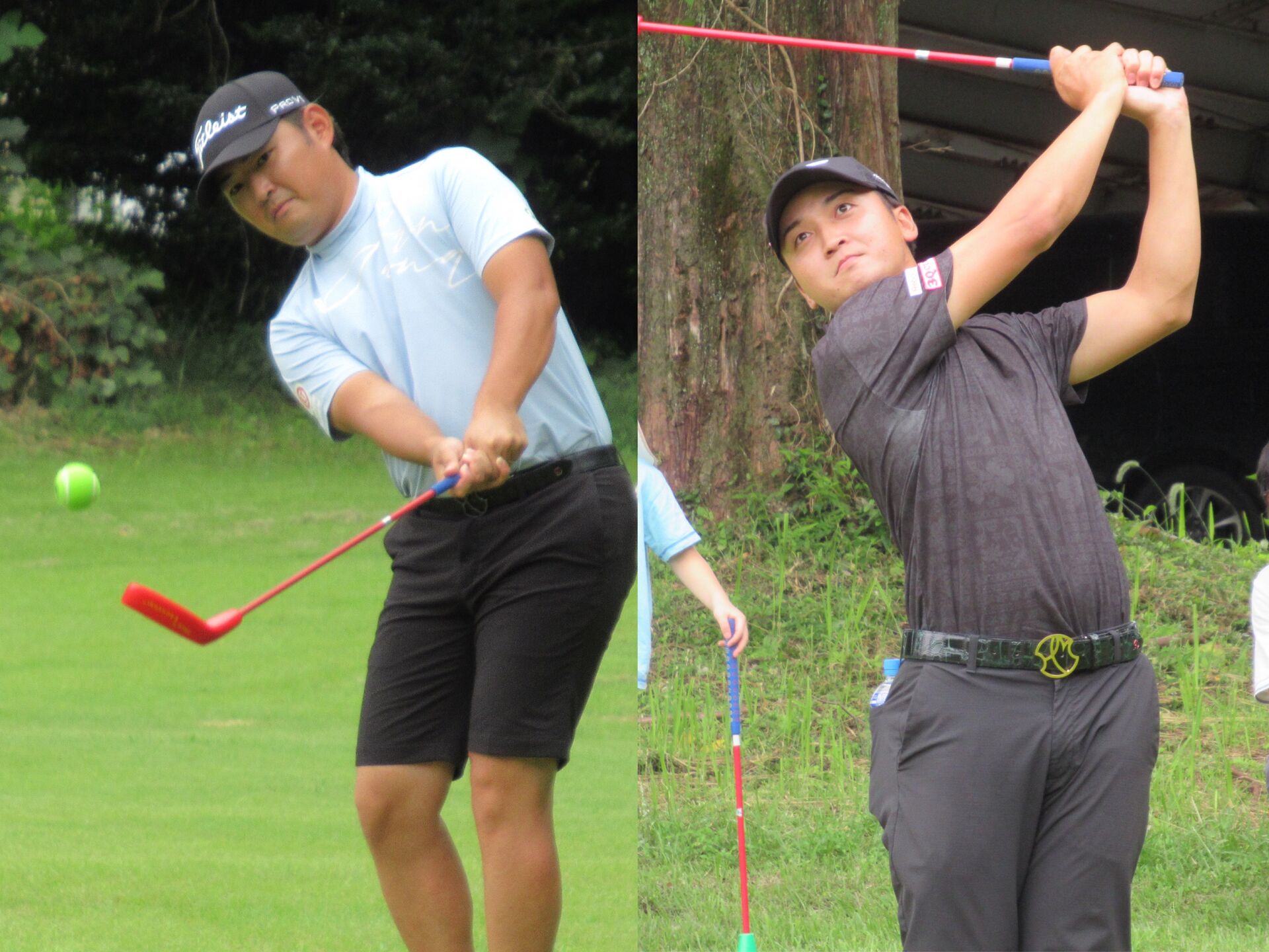 この日、午前に行われたくまもとジュニアゴルフレッスン会の講師として来場した木下と井戸川は、スナッグゴルフ大会でも子どもたちと一緒にプレーし、ダイナミックなショットで児童も親御さんも魅了した。