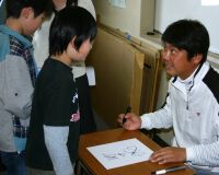 プロ生活19年目にして初優勝を果たした野仲の言葉には重みがあり、子供たちも真剣な眼差しで野仲の話に聞き入っていた。