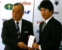 始めに、金庚泰から日本ゴルフツアー機構会長の小泉直へ、持参した義援金を手渡すセレモニーが行なわれた。この義援金は、日本赤十字社を通じて全額を被災者救済のための救援活動、ならびに復興活動を支援する資金として活用される。