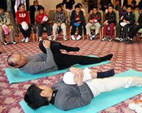 2002年と2007年の賞金王が、床にひいたマットに無防備に寝そべった。もう11年の付き合いになる。専属トレーナーの秋山武雄さん直伝のメニューを、子供たちのために惜しげもなく披露した。