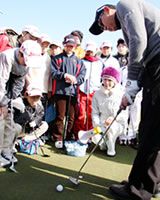 まずは、今年10ヤードも平均記録を伸ばした飛距離で子供たちを凌駕すると、難しいライからべたピンのバンカーショットに胸を張り、長いスライスラインは自分よりも近くに寄せた子供たちにも、惜しみない拍手と賛辞を送った。