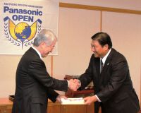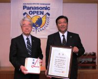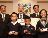 パナソニックオープンの期間中には、バイオディーゼル燃料で走るエコバスの運行、災害地支援チャリティー、ジュニアレッスン、校外学習、エスコートキッズなどの活動を行っており、今回のデジタルカメラ寄贈も、大会を通じた次世代育成支援の一環として実施。