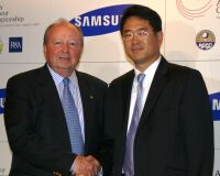 写真左:アジア太平洋ゴルフ連盟 コリン・フィリップス氏 写真右:今回スポンサー契約に調印したサムスン電子 クォン・ゲヒョン氏