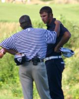 ジョンソンがカップインした直後、競技委員がジョンソンに近寄り、ジョンソンの肩を抱えながら何やら1分近く話をした後、去っていった。