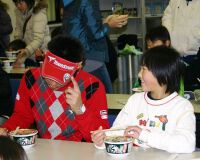 「みんな、今日は来てくれてどうもありがとう。寒かったけど、すごく楽しい時間を過ごせました。今日はボクをサポートしてくれている“どん兵衛”を持ってきたので、たくさん食べて帰って下さい。」