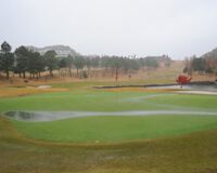 雨は午前9時前には小康状態になったが、ティインググラウンド、フェアウェイ、バンカー、グリーン等に水が浮いており、コース整備に時間がかかることや日没時間などを考慮した。