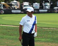 「でもタフなコースですよ、このコースは」とコースの難しさを語り、「取りあえず距離が長い。本当に長い・・・」とがっかりしたポーズを見せて周囲の笑いを誘った。