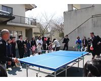 先の“熱戦”の舞台となった卓球台も、校庭の真新しいバスケットゴールも、谷口が贈ったお金で施設が購入されたものだ。