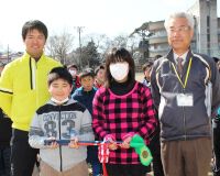 「今日みんなと楽しく遊ばせていただく武藤俊憲です。みなさんに1日楽しかったなと言ってもらえるようにがんばりますので、よろしくお願いします」とプロから挨拶があり、スナッグゴルフ用具の贈呈式が行なわれた。