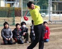 武藤は順番に、「うまい!」「よし10点狙っていこう」と子供たち一人ひとりに声をかけ、何度も目線を子供の高さに合わせて腰をかがめ、丁寧に手取り足取り指導していた。