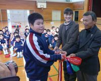 また、この日の記念すべき第1校目の贈呈式と実技講習会には、本家とも言うべき広島県ジュニアゴルフ振興会から代表の枝広美子プロや自販機のイラストを手掛けた田中康一さんも駆け付けて、瀬戸内海をまたいで広がる、ゴルフの仲間たちを応援し祝福した。