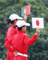 ★ティーショットの落下地点には各選手の国旗を持った女性スタッフが選手にその場所を示している。パー3ホールを除く全ホールで行っているみのサービスは、ギャラリーにとってもどこにボールがあるか分かりにくい時にとても良いサービスだ。日本のトーナメントでも採用される日は近い?