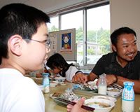 給食の時間は吉澤くん(左)を中心にして、お笑い話で盛り上がる!
