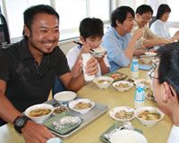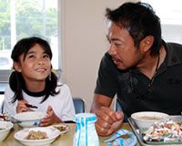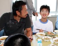 中学以来約20年ぶりという給食に舌鼓を打ちながら片山は、子供たちとの他愛ないお喋りを楽しんだ。