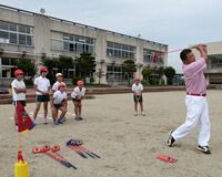 三重県の津市立川口小学校で、クラブ活動の種目でスナッグゴルフを選んだ児童6名が参加しての実技講習会が行われ、梅雨の中休みに広々としたグラウンドで、元気よくスナッグゴルフを楽しんだ。