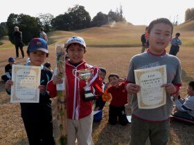また4年生の部で優勝した井藤吉紀くんは、「嬉しいです。坂道と頭を使って攻めました」とスピーチ。6年生の部で優勝した中森瑞季くんも、「今回初参加でしたが練習のときよりも上手くできました。思ったよりも良いスコアだった」と、副賞のみかんや大根、そして人参を手にして喜びを表現した。