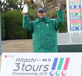 チームの優勝の原動力となったのは、小平智だった。午前中のダブルスは、松村道央と組んで、LPGAの吉田弓美子・堀奈津佳チームと並んで2.5ポイントをゲット。午後のシングルスでは、吉田弓美子、奥田靖己の2人を抑えて3ポイントを獲得、この日1人で5.5ポイントを稼ぎ、MVPに輝いた。おまけにシングルスでは、17番ホールでこの大会初のホールインワンを達成、日立グループから記念品を贈られた。「いい球で、うまく転がって入ってくれた」と振り返る。自身4回目のホールインワンで、プロになっては初めてだった。