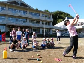 岩手県の宮古市立門馬小学校の全校児童9名がスナッグゴルフを体験(9月17日)