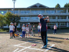 4年生が3人、5年生が2人で、あとの学年は全て1人。9人の全校児童が校庭に出てくるなり、物珍しそうに用具を眺める。