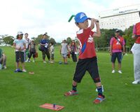 開会式は、前年度総合優勝者の粂地純弥くんの選手宣誓と、上野正三市長の始球式で幕を開けた。