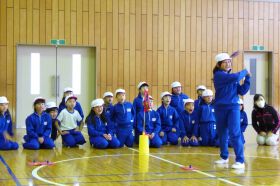 前夜から初雪が降り始めた福島県の矢吹町立中畑小学校で、スナッグゴルフ実技講習会が行われ、4年生19人が後藤美希子プロによる基本指導を受けた。