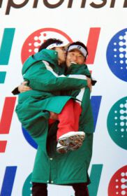今朝の千葉は氷点下の冷え込みに、コースにも霜が降りて地面がかちこち。その影響でスタートが15分遅れて、大勢のギャラリーをお待たせしてしまった分、「霜を溶かすくらいの熱気でやろうと思った」と、若き選手会長も並々ならぬ覚悟で臨んだが「最後は、女子の勝負強さをみせつけられた」と、最後は男らしく勝ちを譲った。