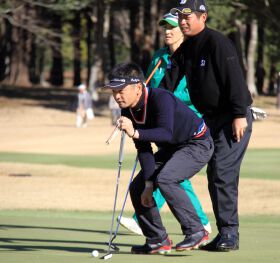 バーディを獲るたびに、抱きついてくるヒョンソン。「僕にその気はないのに、ヒョンソンがべたべたしてきて・・・」と顔をしかめてみせた藤田も、まんざらではない。「僕ら仲良しだから」と、このチーム戦も本来なら4年ぶり4度目の出場を果たした弟弟子の宮本と組むところを、「わざわざ蹴って、ヒョンソンと組んだ」と藤田にフラれた(?!)宮本も、一つ前の組で善戦した。