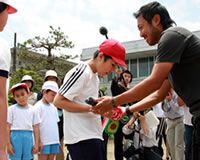 ボールを打つ感触、的に当たる音。そして全身で感じる賞金王のぬくもり…。心躍る瞬間に子供たちは、夢中になった