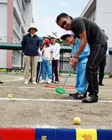 村田校長先生は、子供たちの楽しそうな様子を見ているうちに、ここから歩いて10分のところにあるお隣の水戸市立常磐小学校と「スナッグゴルフで交流出来ればまた楽しいのではないか」とのプランも浮かんできた。