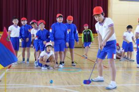 参加した児童たちは、「ゴルフについて知らなかったけど学ぶことができた。」、「最初は面白くなかったけど、やってみるとだんだん楽しくなった。」、「スナッグゴルフの道具を頂き学校にずっとあるのでまたやりたいです。」などの感想を発表した。