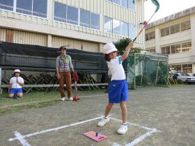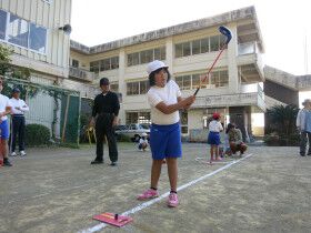 実技講習会の感想を聞くと、「高く飛ばせて嬉しかった」、「スナッグゴルフをやるのが初めてだったけど、とても楽しかった」、「10点にくっつくとは思わなかったけどくっついて嬉しかったのでまた体育の時間にやりたいです」と話した。