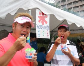 伊達の牛たん本舗の「牛タン」や、ヤマサコウショウの「牛タン入りつくね」。色とりどりのかき氷はこの日はあいにくの雨模様も、戦う選手たちには何よりの水分補給となりました。
