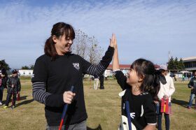 競技方法は、子どもが1打目を打ち、2打目以降を大人が交互でショットする方式で行われ、途中から吹き始めた強い西風に、難しさもグングン高くなったが、総合優勝した修徳小学校4年の寺田壮太ペアは、11アンダーの18ストロークでまわり、他を圧倒する強さで初めてのタイトルを獲得した。