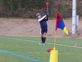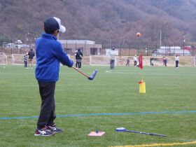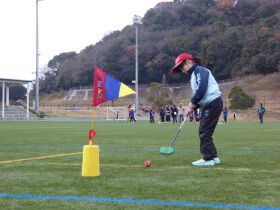 年末の恒例行事となっている、香川県スナッグゴルフ交流大会が、高松市立東部運動公園で行われ、小学生など76人が参加して個人戦やペア戦で競い合った。