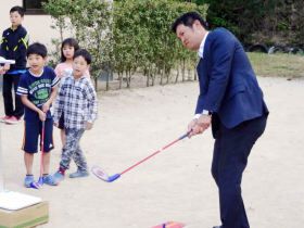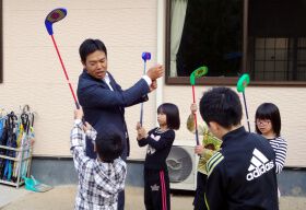 武藤俊憲が笠岡市の児童養護施設にスナッグゴルフを寄贈(5月2日)