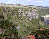 海に向かってせり出したティグラウンドから、断崖絶壁のグリーンを狙う 181ヤードの8番パー3なんといっても、海から吹き上げてくる強風がカギ。特にフロント9は、海に面した 断崖絶壁を伝うようにホールが続き、風が吹かない日は1日もないといっていい。 ショットだけでなく、グリーン上でもけして気が抜けない。小さく固いグリーンに重 い海風が加わって、パッティングの難易度は想像を絶するものになる。
