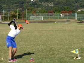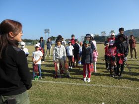 晴れ渡る空の下、天然芝が綺麗に張られている県総合運動公園サッカー場にて第3回香川県スナッグゴルフ交流大会が開催された。