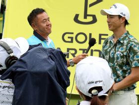 インターネット生中継は、ツアー7勝のベテラン宮瀬博文がラウンドリポーター。「緊張で噛み噛みです」と恐縮しながら奮闘中!