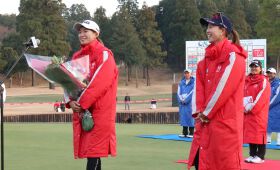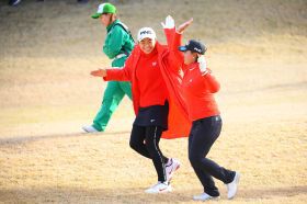 今の女子ツアーのかたい結束を象徴するような、ほほえましいシーン。