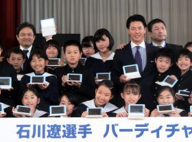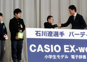 今年は300超えが目標!! 石川遼がカシオの電子辞書を小学校に寄贈