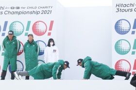 2年ぶりに復活した女子とシニアと男子の対抗戦「Hitachi 3Tours Championship(日立3ツアーズ選手権)」は各ツアーから参加した7人が2人1組で争う前半9ホールのベストボール戦が終了し、連覇がかかる女子が9ポイントでリードした。