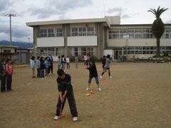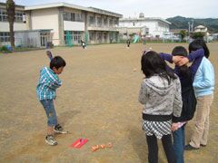 高知県の香美市立船入(ふないれ)小学校でスナッグゴルフ実技講習を実施(4月23日)