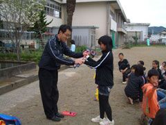 最後に児童代表が「上手く打てるか心配だったが、とても楽しかった。頂いたセットを皆で使ってもっと上手になりたいです。ありがとうございました。」と御礼のあいさつがあった。