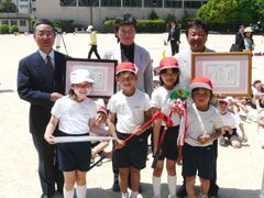 あれから10ヶ月が経過し、小学校に用具が導入できる財源が集まり、記念すべき第一 号目の小学校を広島市教育委員会が選定し、広島駅から5分ほどの都心のど真ん中に 位置し、130年以上の伝統を誇る、広島市では最も古い幟町小学校に白羽の矢が立っ た。