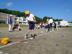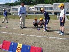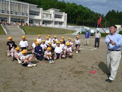 今回の実技講習には、常陸大宮市教育委員会が、2008年7月に開催した体育指導員実技講習会に参加経験のある、地元の体育協会の青木さんと青 柳さんが駆け付け、子どもたちと楽しい時間を過ごし、今後の定期的な指導にも積極 的に加わる意気込みで、今朝は早速、校庭に隣接する芝地の刈り込みを1時間以上も かけて手入れし、子どもたちのために朝から汗を流した。